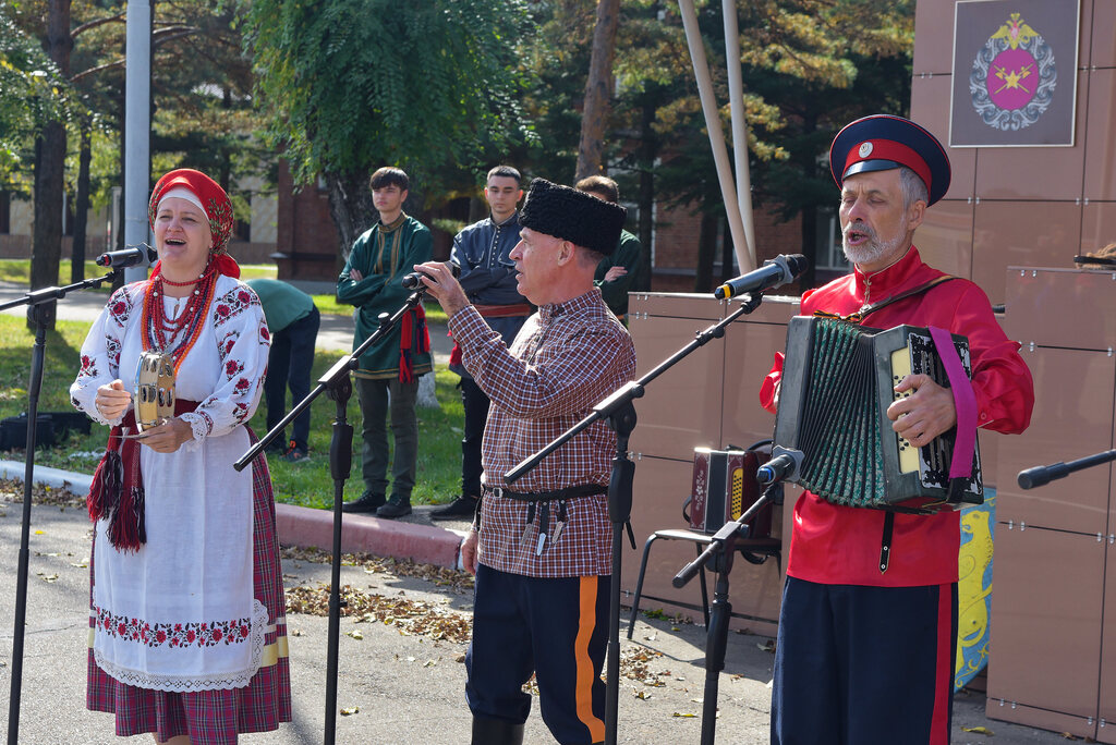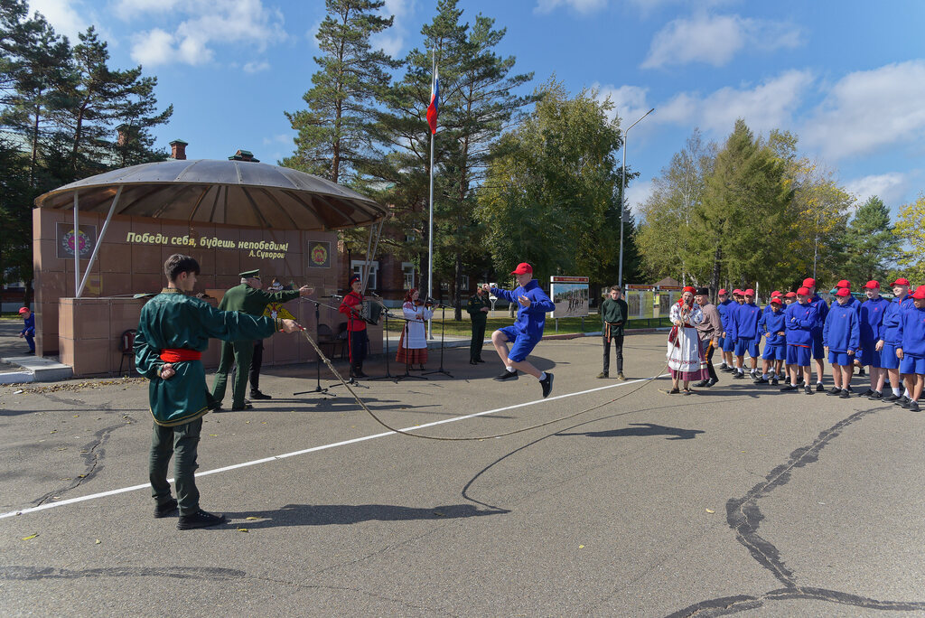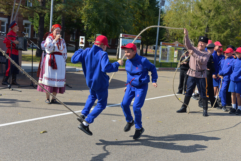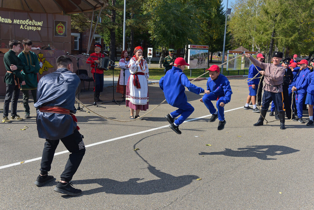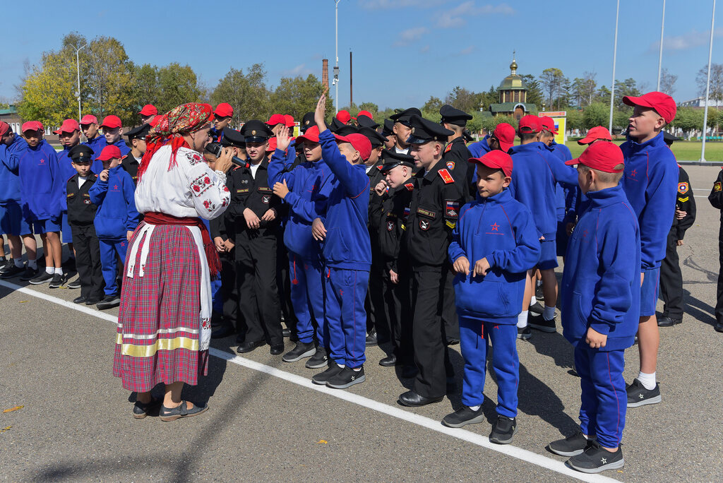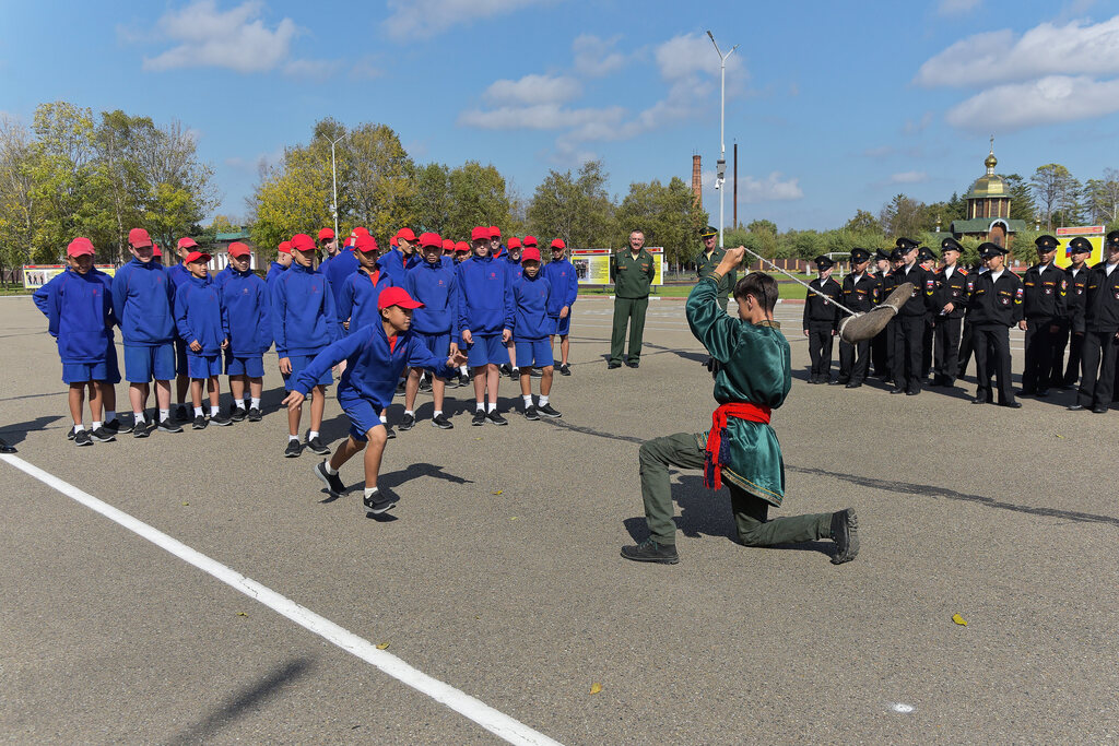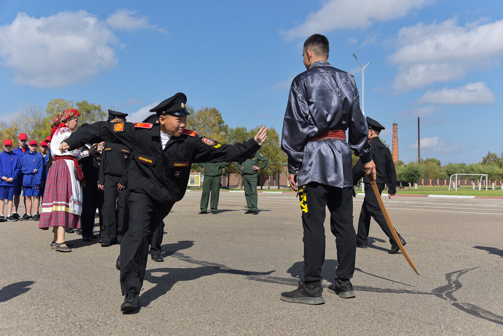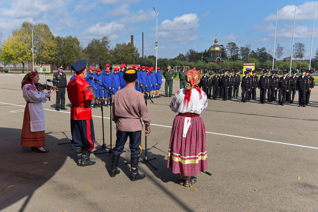 В исполнении ансамбля народной музыки «Традиция прозвучали песни о Великой Отечественной войне «Зима лютая проходит» и «Ой да вспомним, братцы, мы, кубанцы». Дети услышали старинную казачью былину о богатыре Илье Муромце, исполненную Заслуженным работником культуры Олегом Семеновым. В это время одного из суворовцев облачили в богатырский доспех: кольчугу, шлем, вручили щит, чтобы он показал свою силу богатырскую.