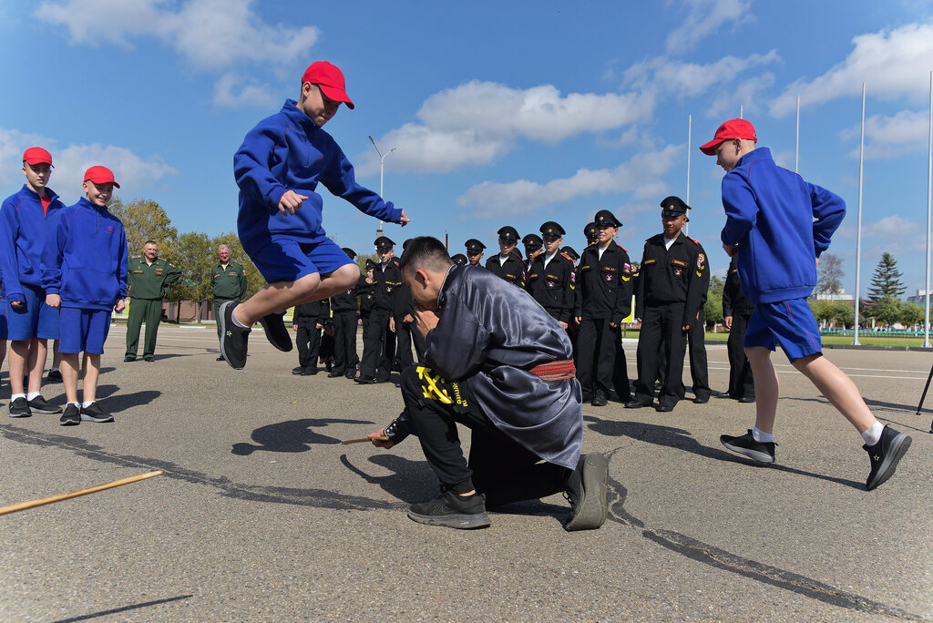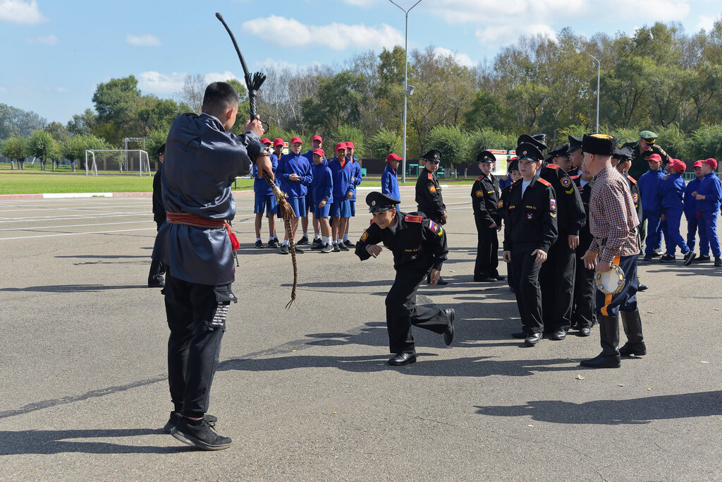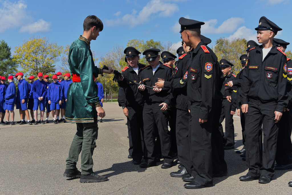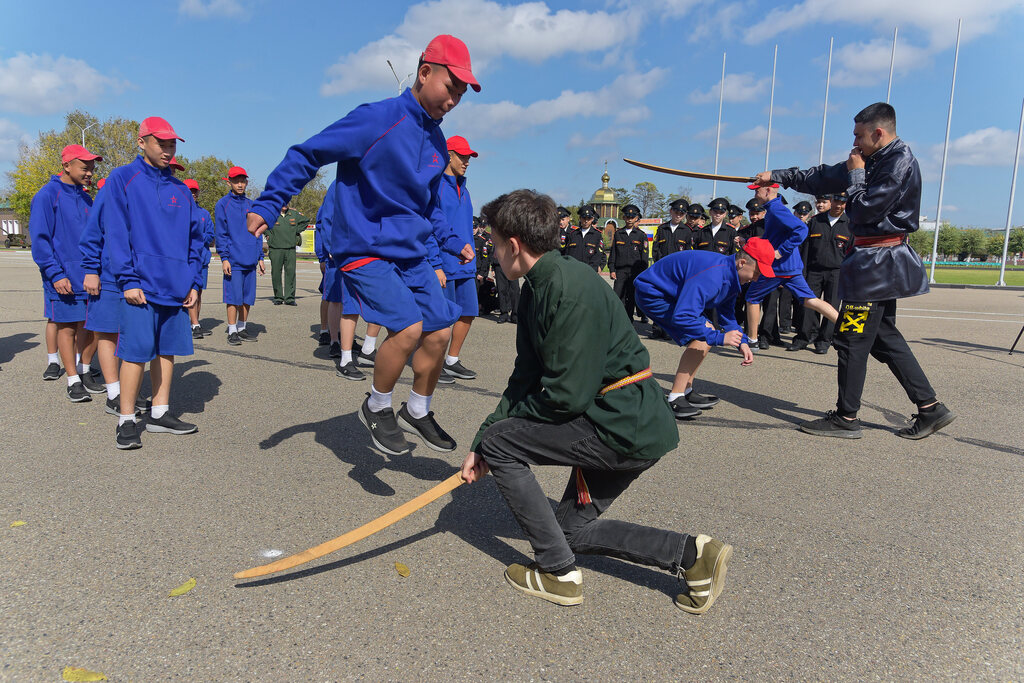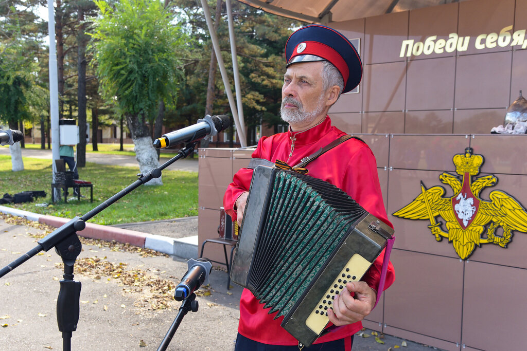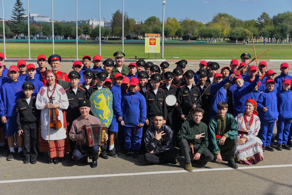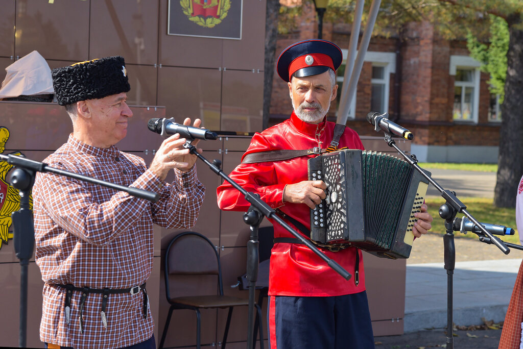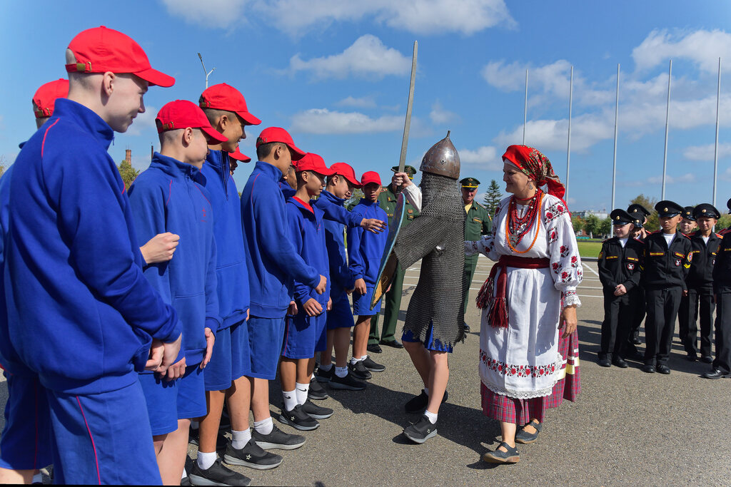 В исполнении ансамбля народной музыки «Традиция прозвучали песни о Великой Отечественной войне «Зима лютая проходит» и «Ой да вспомним, братцы, мы, кубанцы». Дети услышали старинную казачью былину о богатыре Илье Муромце, исполненную Заслуженным работником культуры Олегом Семеновым. В это время одного из суворовцев облачили в богатырский доспех: кольчугу, шлем, вручили щит, чтобы он показал свою силу богатырскую.