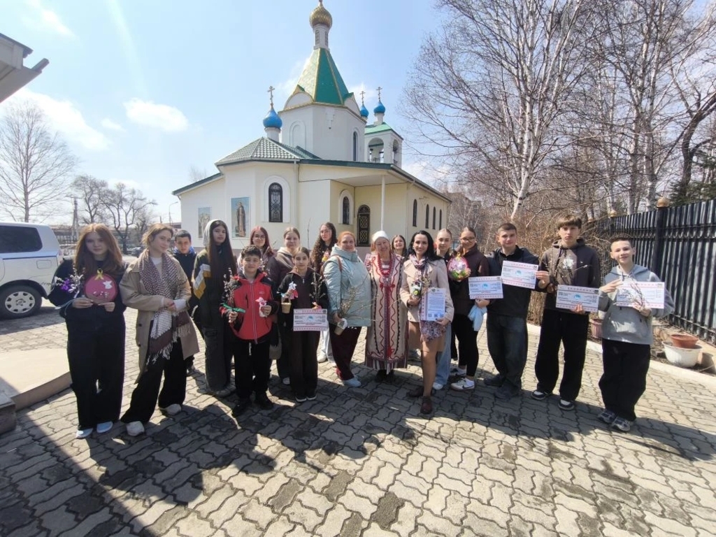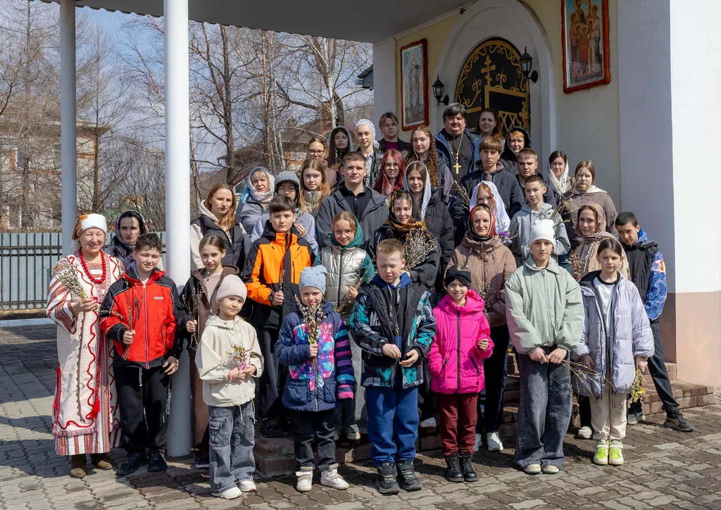 Более 60 уссурийских школьников побывали 5 апреля 2026 года в храме Святого Серафима Саровского города Уссурийска и воскресной школе на фольклорном празднике славянских народных традиций «Вербное воскресенье».