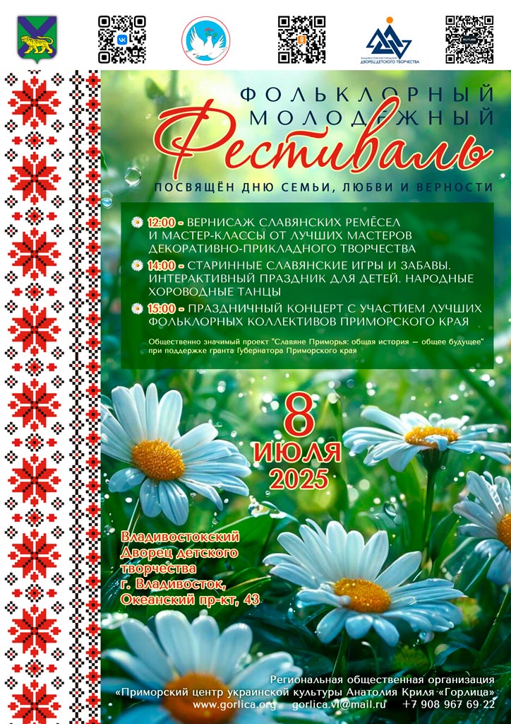 Здесь в течение 2025 года будет размещена вся информация, касающаяся проекта "Славяне Приморья: общая история – общее будущее", реализуемого за счет субсидии из Краевого бюджета. Подробную информацию о проекте можно посмотреть в карточке заявки на портале ГрантГубернатора25.